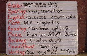 One strategy that worked for us is capitalizing on each others strengths. Since my husband and the boys are early risers, he is able to get them started each morning way before breakfast. Each morning he’s able to rotate one, two or all three boys on Typing Instructor, depending on the day. Then mostly on the weekends they conduct their Spanish Lesson on Rosetta Stone. A 30 minute session is all it takes. Art and Music usually take place after lunch, alternating days.